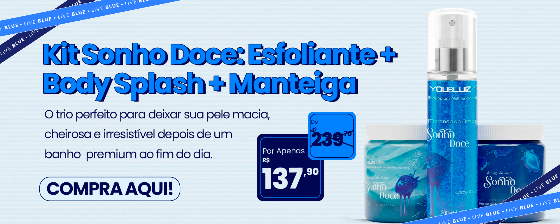 O Kit Natal Blue foi criado para transformar o autocuidado em uma experiência completa — do banho ao perfume final. Um presente sofisticado, sensorial e funcional, pensado para quem ama se sentir limpa, cheirosa, confiante e bem cuidada em todos os detalhes.